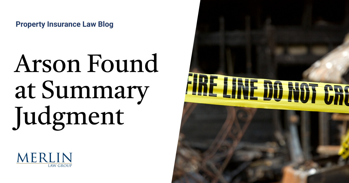 Arson Found at Summary Judgment? A Decision That Should Make Every Policyholder Nervous | Property Insurance Coverage Law Blog